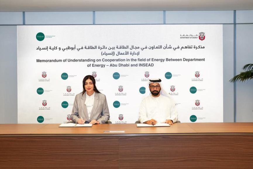 Abu Dhabi Department of Energy (DoE) has signed a Memorandum of Understanding (MoU) with INSEAD, the international business school, to enhance cooperation in energy and water efficiency, sustainability and behavioral change.