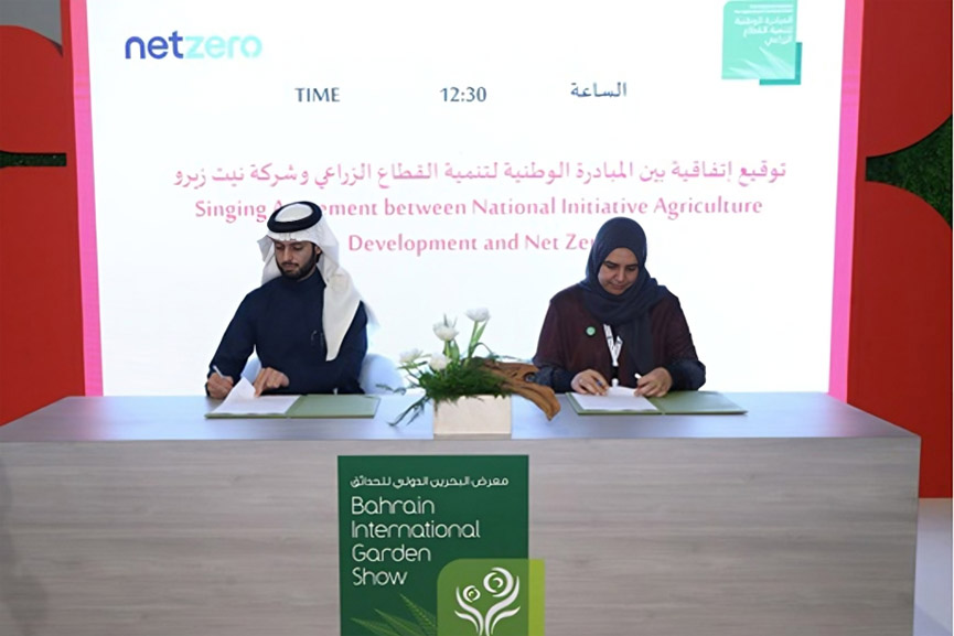 Bahrain’s National Initiative for Agricultural Development (NIAD) has signed a cooperation agreement with Saudi Arabia-based Net Zero Environmental during the Bahrain International Garden Show, held under the royal patronage of His Majesty King Hamad bin Isa Al Khalifa at Exhibition World Bahrain.